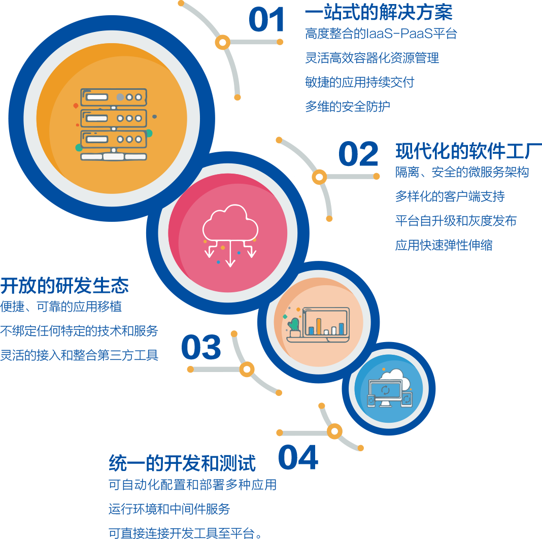 PaaS是科技基于平台即服务(PaaS)模型而开发的云平台产品,它以容器技术、分布式架构和现代开发框架为基础,将软件应用集合、中间件集合、框架等服务化,实现应用与物理层的解耦,在此基础上可以迅速构建应用的开发测试环境,实现敏捷的应用部署和维护,支持资源的弹性扩展。