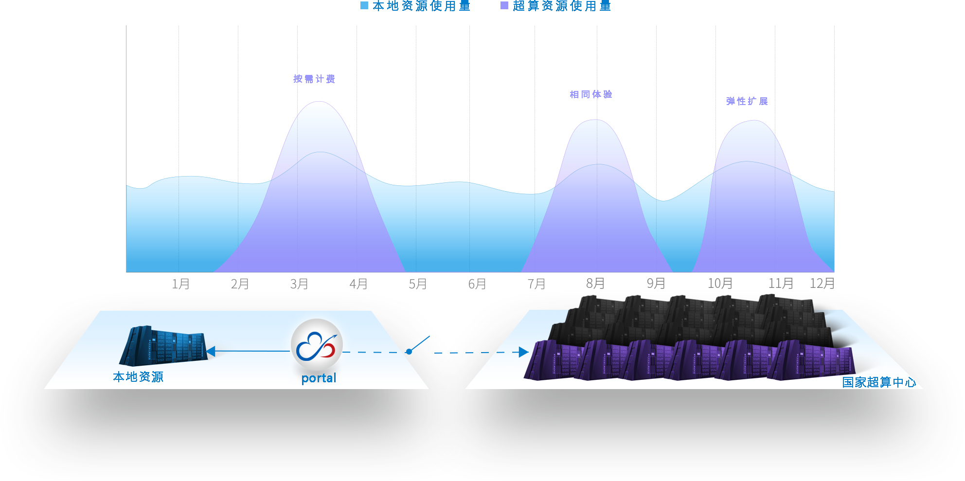 对于一些科研创新团队、实验室来说持有自有资源可能是一件非常奢侈的事情,因此使用超算中心资源是他们的首选,然而超算中心的接入、使用、软件的应用部署安装等等工序对这些科学家来说完全是不同的知识领域。Portal可以完全帮助这些客户将他们自有的业务、研究项目、数值试验环境建设在超算中心上,通过Portal简洁的交互方式,让用户完全聚焦在自己的业务试验上,并按照资源的使用情况,按需付费。